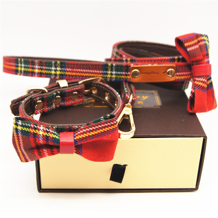 Collier universel pour animaux de compagnie, série JK à carreaux rouges, nœud papillon détachable, petit chat et chien