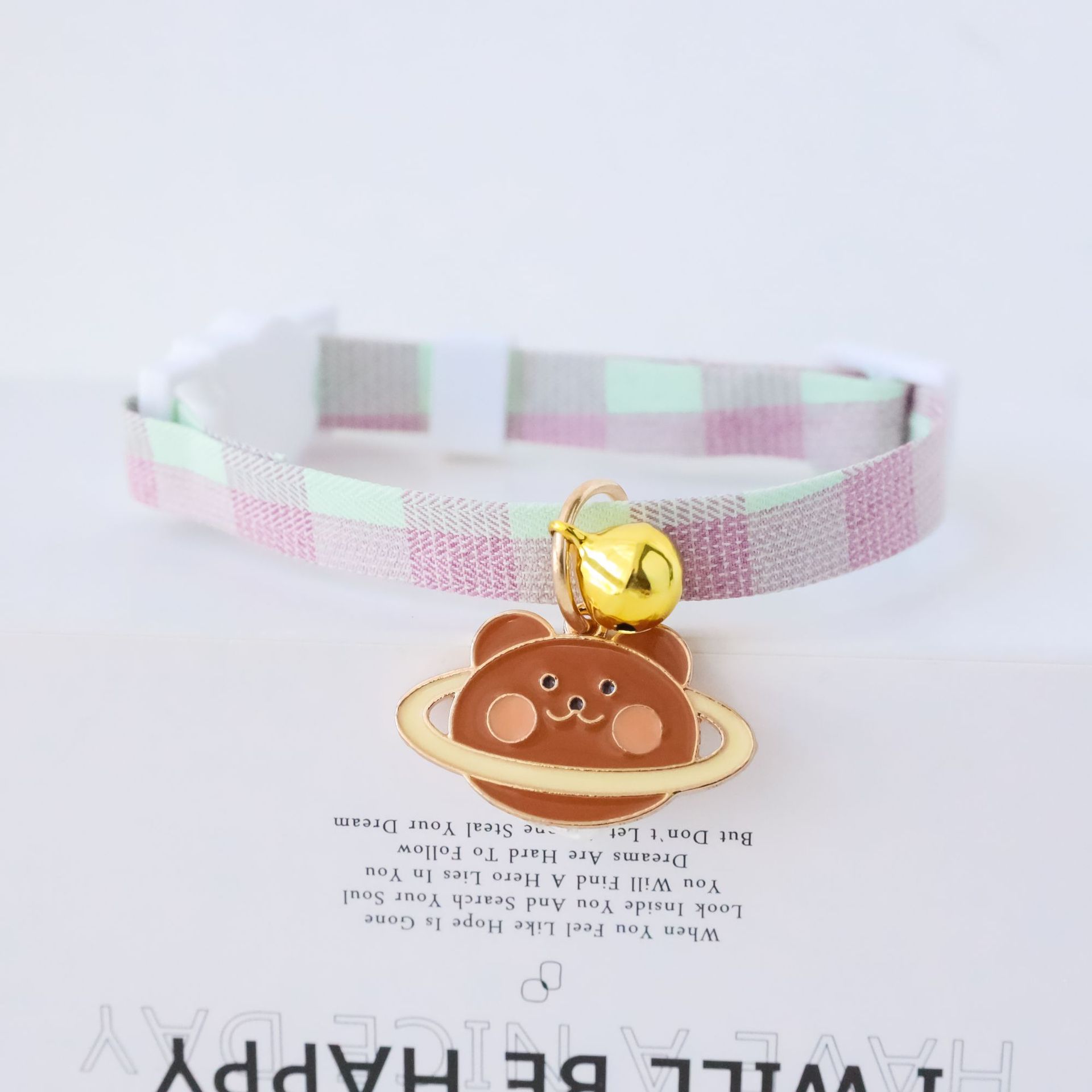 Collier pour animaux de compagnie chaton chien cloche boucle de sécurité ours brun monocouche S