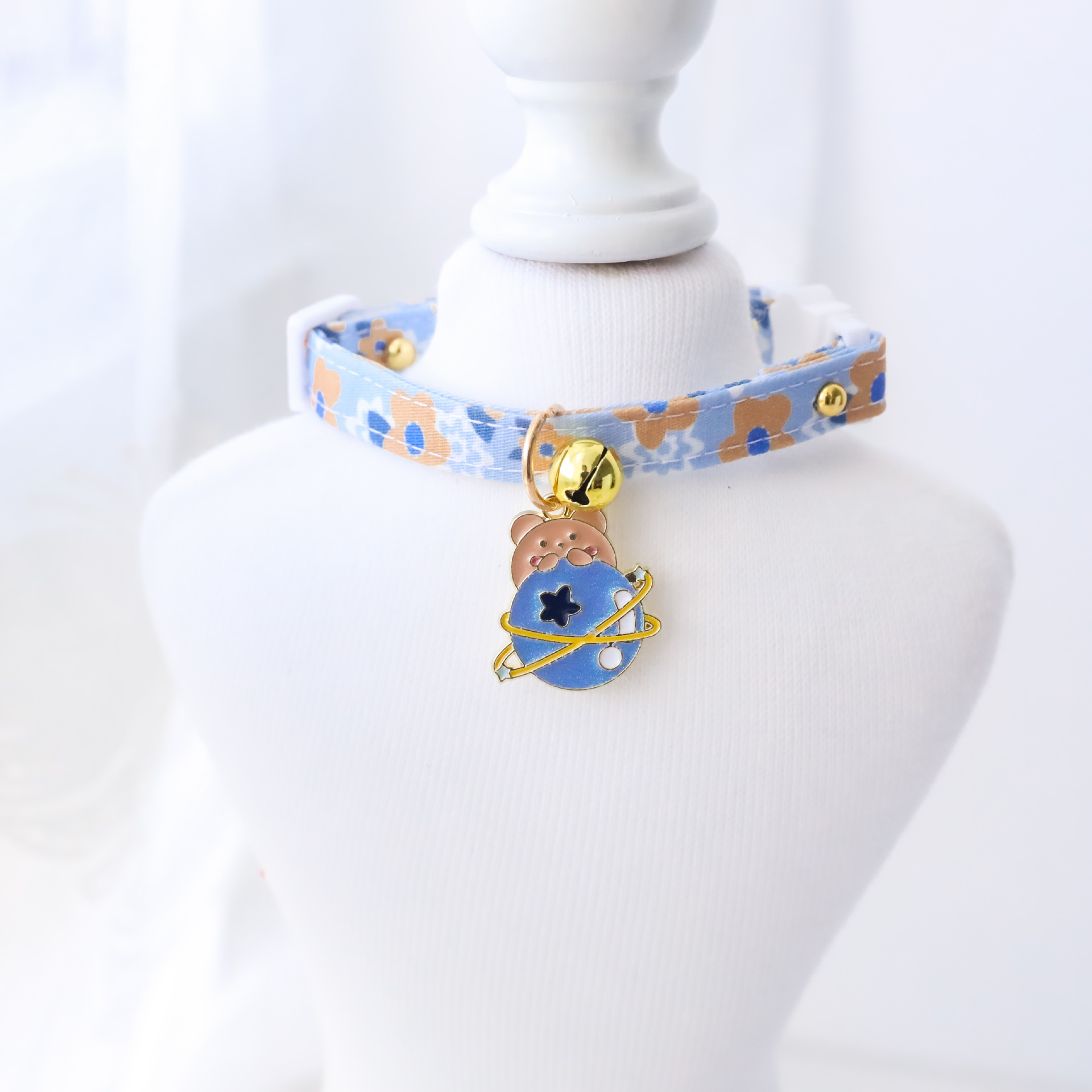 Collier pour animaux de compagnie chaton chien cloche boucle de sécurité ours bleu monocouche M