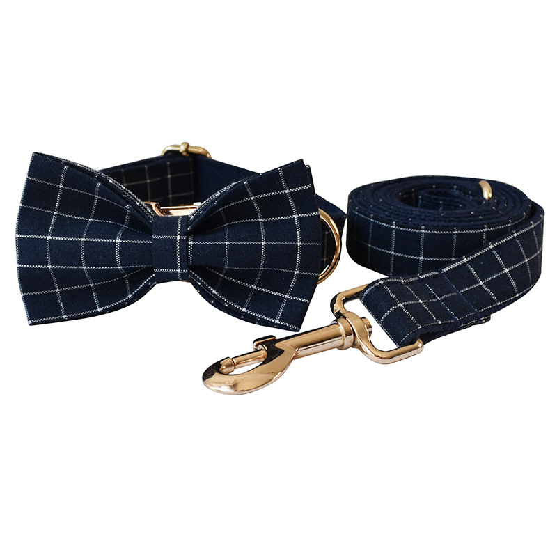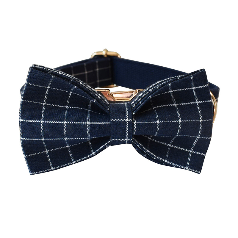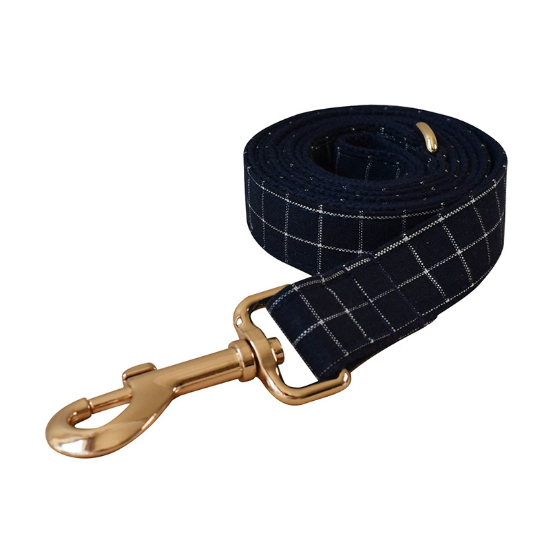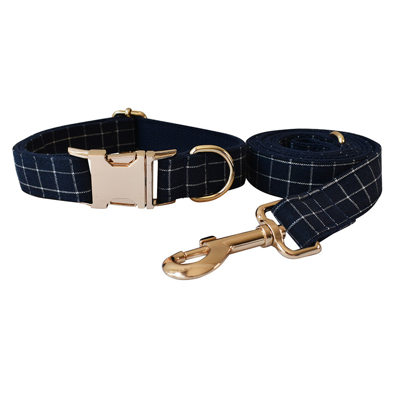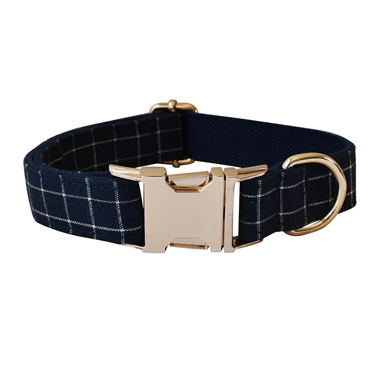 Boucle en alliage de collier de chien de bouton d'or de Plaid bleu marine